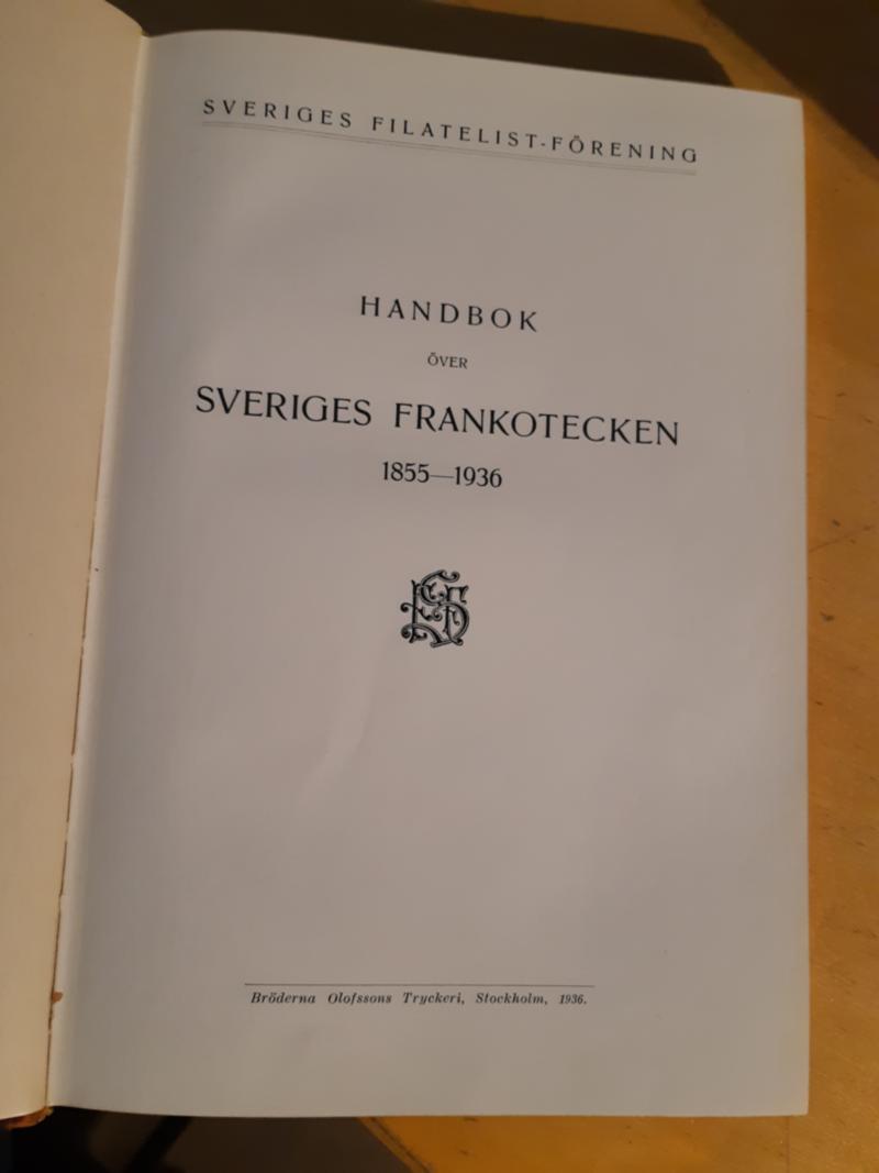 Sweden, 'Handbok över Sveriges frankotecken 1855–1936' owned and signed by S. Ringström. Numbered edition 175 out of 200. Two reprints of later date of 8 and 24 Skill Bco are glued in on the inside front cover. 3 more images are available at www.philea.se (Image1)