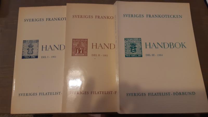 Sweden, Handbooks, etc. 'SFF:s Handbok Del I–III' in three separate soft bound volumes (Sveriges Filatelist-Förbund, 1962–1964), 'Tidiga svenska datumstämplar del I' (SFF) and Aktuellt om Posthistoria, Nr 3 (1991), 8 (2003) and 12 (2014). All are used. (7) 2 more images are available at www.philea.se (Image1)