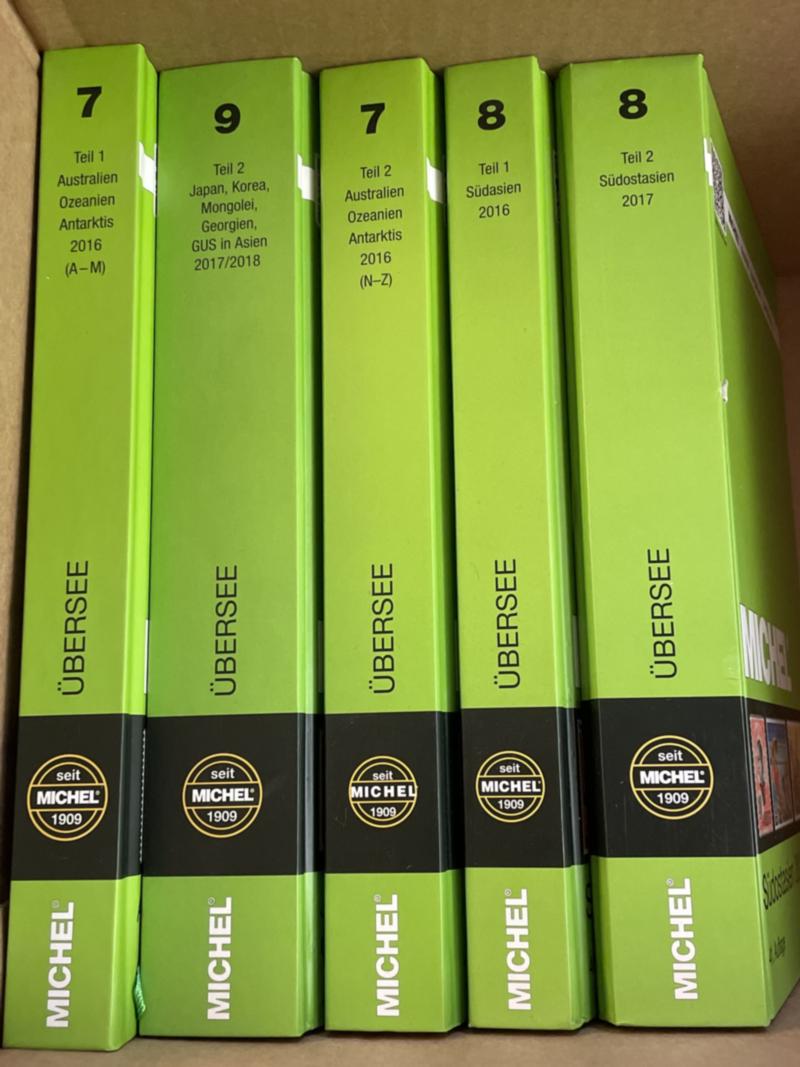 ALL WORLD, ASIA, Michel catalogues South East Asia 2017, South Asia 2016, Australia-Oceania-Antarctic 2016 (two volumes), Japan-Korea- Mongolia-Georgia-GUS in Asia 2017/18. Approx. 6 kg. (Image1)