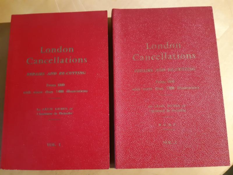 Britain, Dubus, L., 'London Cancellations Repairs and Re-Cutting from 1840 with more than 3000 illustrations', 1969, two volumes, paperback, 283 + 312 pp., bilingual English/French. Used. Rare. (Image1)