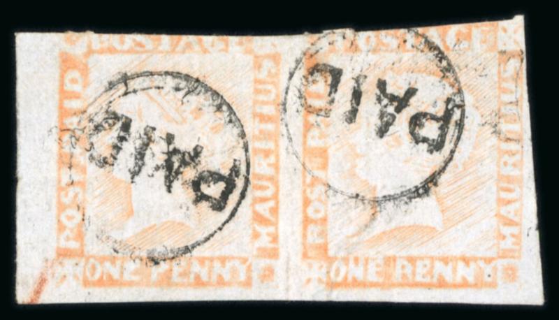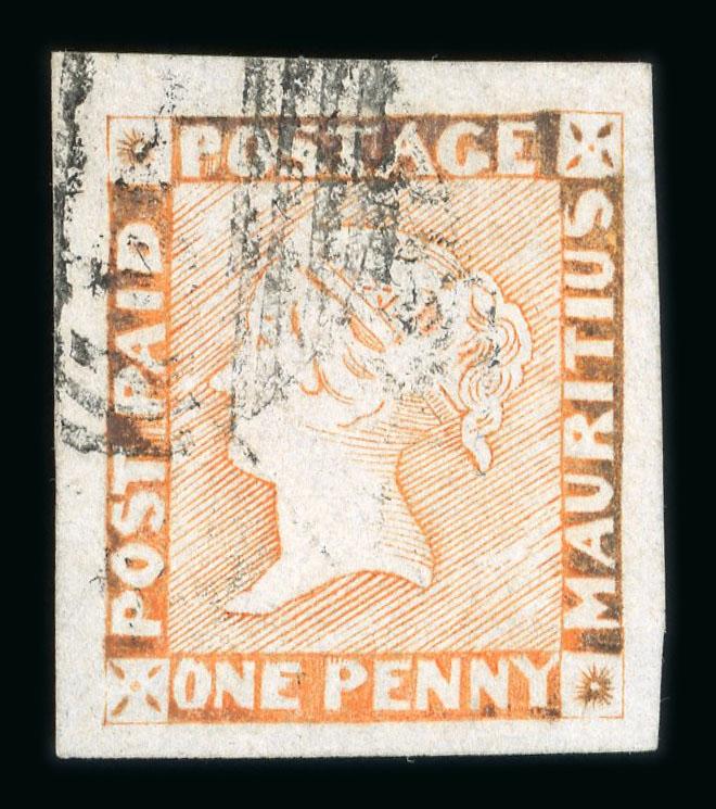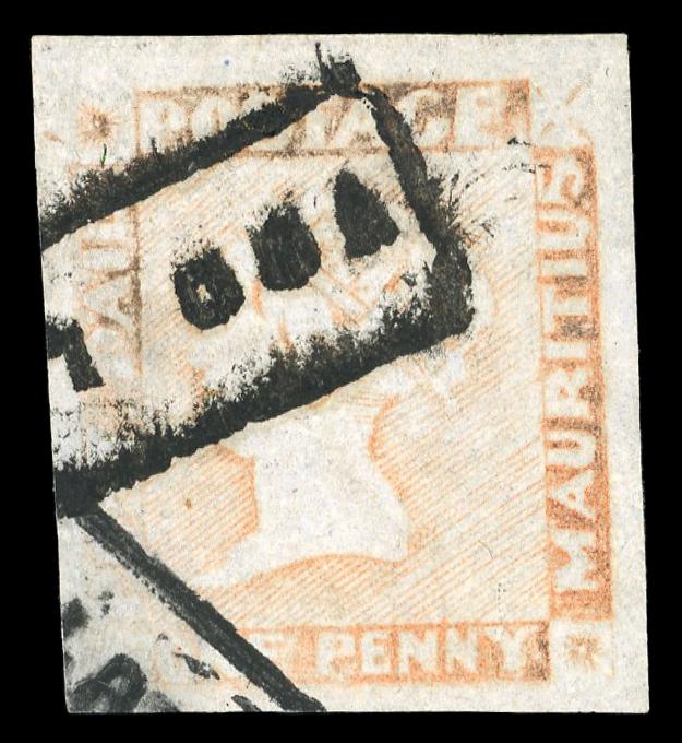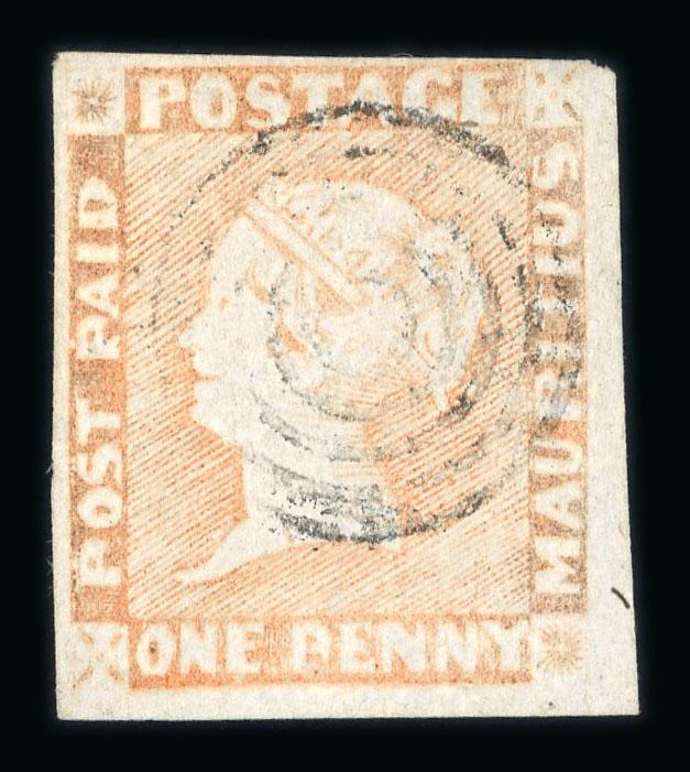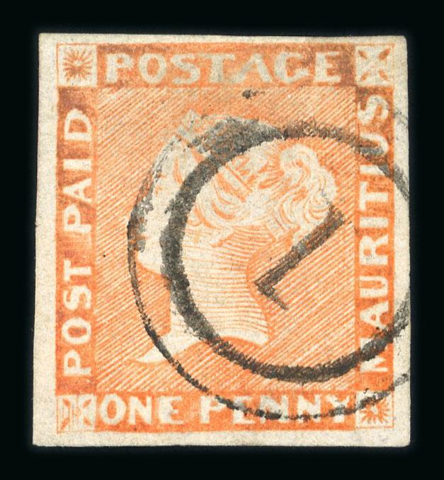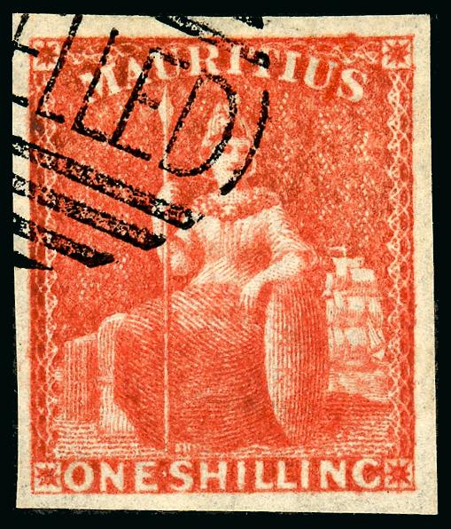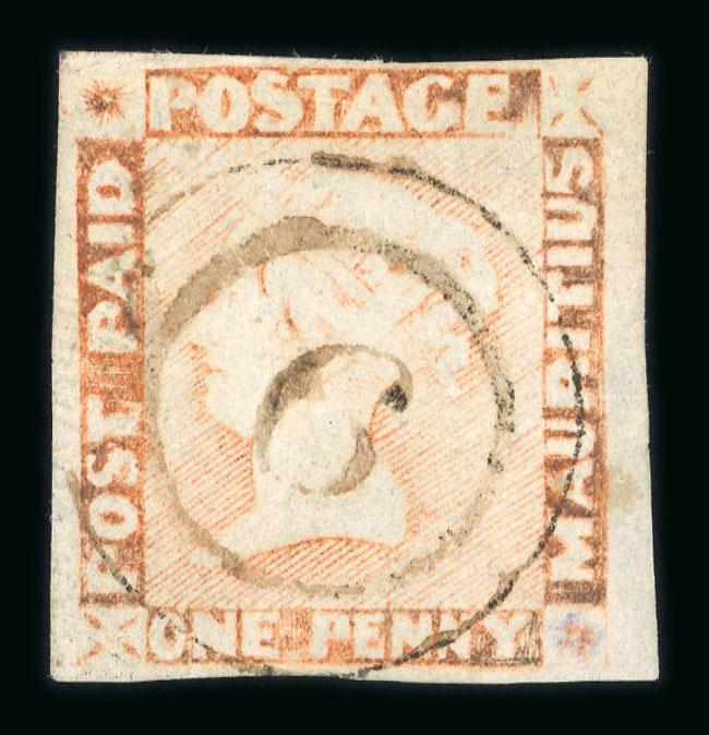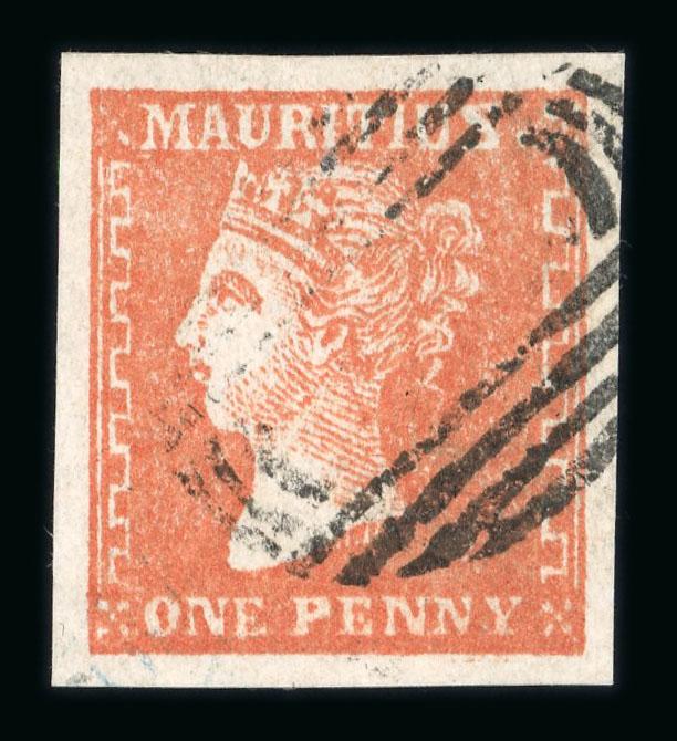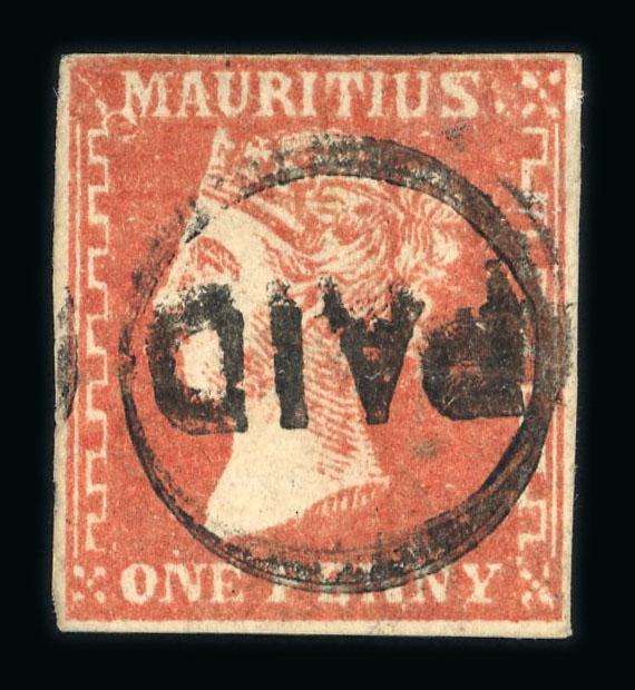 1d dull vermilion on bluish paper, late intermediate impression from position 5, four margins used with Mahebourg numeral '1' cancel, some slight oxidisation, a good example with a host of expertising marks on reverse and BPA Cert (2020) (Image)