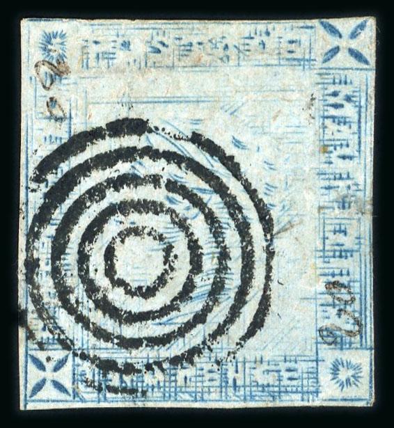 2d blue, Lapirot, worn impression (pos. 7), some margins repaired but a very attractive example struck by small 5 concentric circles. (Image)