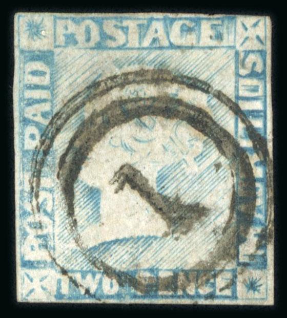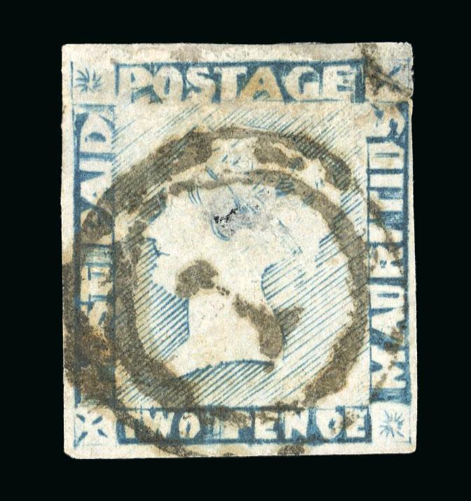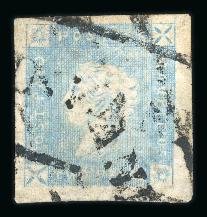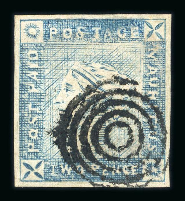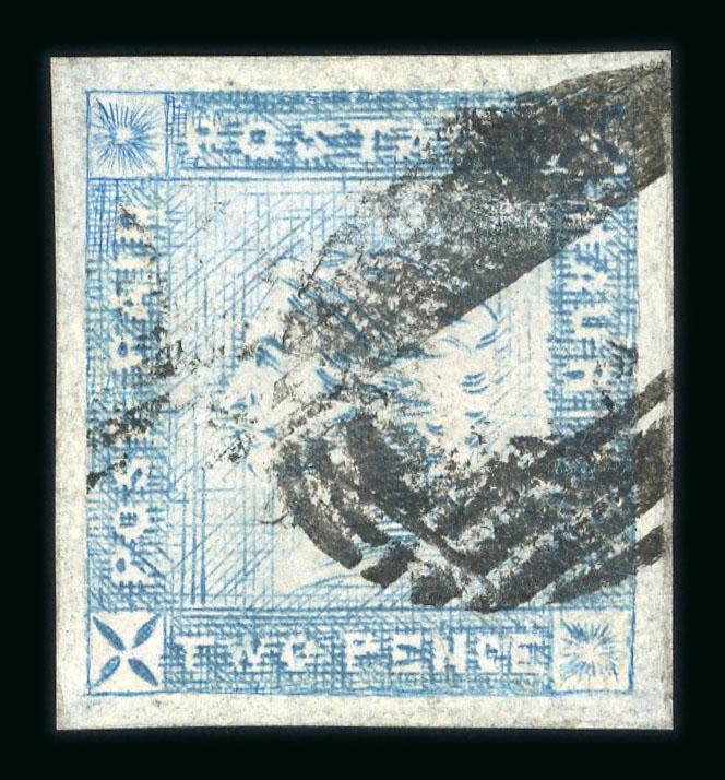 2d blue, early impression (pos. 6), only slightly touched at top otherwise full margins, small light thinning on reverse, otherwise fine (S.G. £10'000). (Image)