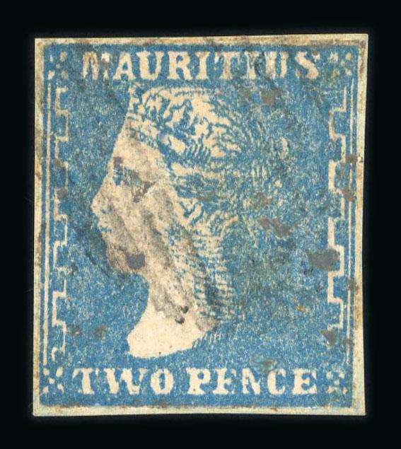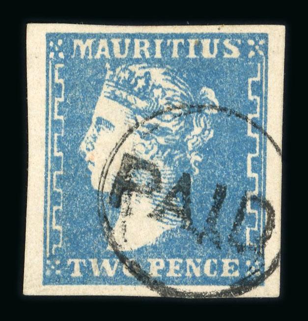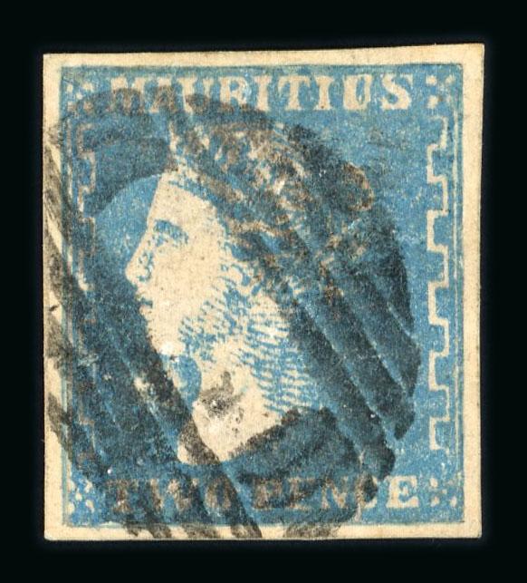 2d deep blue, early impression, pos.3, close to huge margins, with superb strike of the "2" numeral of Flacq, rare in this outstanding quality; signed Holcombe as early, cert. BPA (2025), Scheller (2018) and Bühler (1989) (S.G. £11'000). (Image)