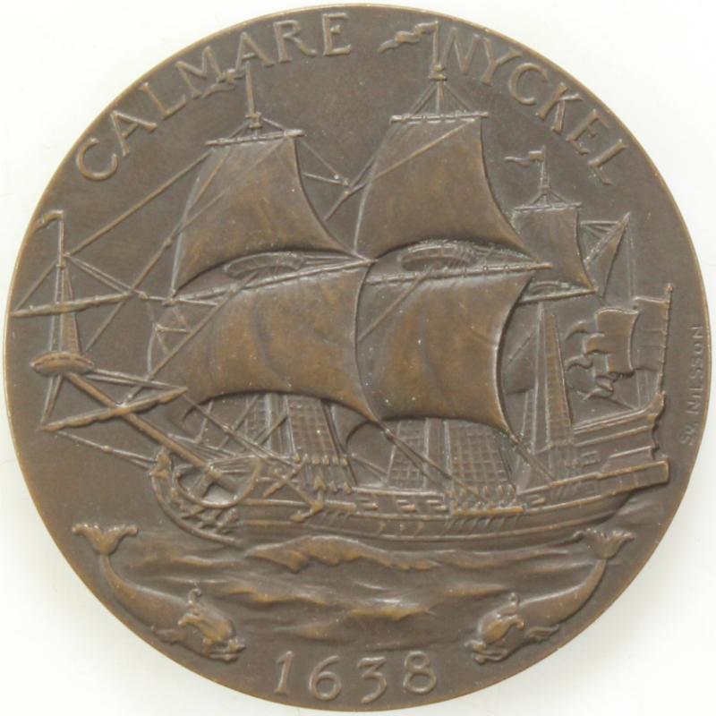 SWEDEN 1938 Delaware Tercentenary Official medal, 56mm bronze, designed by Sv. Nilsson, obv ship Kalmar Nyckel, rev map of the early settlements, produced by Sporrong & Co. and sold by the Swedish-American Tercentenary Association; XF (Image)