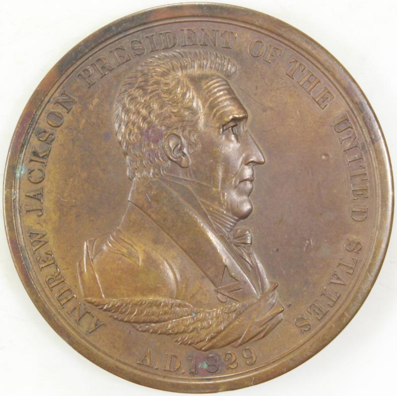 1829 Andrew Jackson Peace medal, 76mm bronze, a few nicks. (Image)