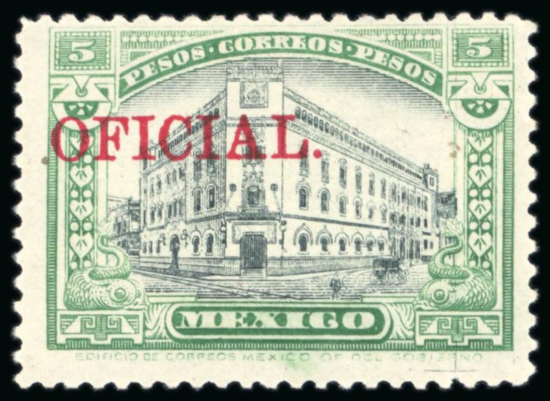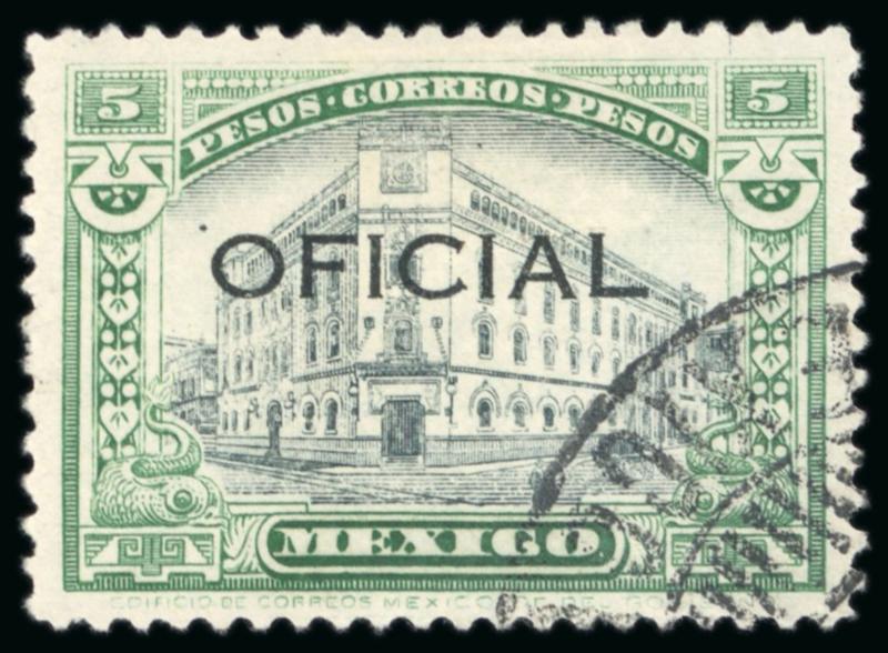 Officials: 1927-28 5p green & black, with remainder cancel, very fine and scarce (Sc. $500), cert. MEPSI (2022). (Image)