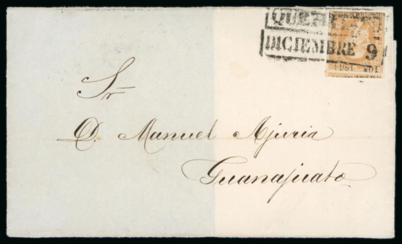 1866-1867 Maximilian issue, districts San Luis Potosi, Tepeji del Rio, Toluca, Tulancingo, Vera Cruz, Zacatecas and many sub consignment numbers nice item including 82 mint and used stamps (72 lithographed and 10 engraved) and seven letters with different shades and high quality cancellations, several valuable and rare stamps (six Mepsi certificates), CV around 9'500€ (cat. Folansbee and Yvert), very fine condition. (Image)