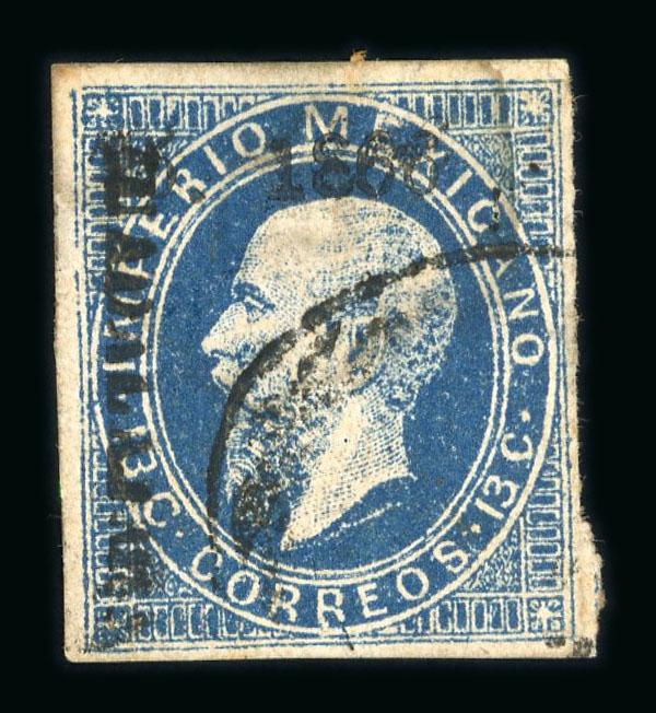 1866-1867 Maximilian issue, districts Apam, Campeche, Chalco and Colima nice item including 35 mint and used stamps (31 lithographed and 4 engraved) and two letters with different shades and high quality cancellations, several valuable and rare stamps (two Mepsi certificates), CV around 5'000€ (cat. Folansbee and Yvert), very fine condition. (Image)