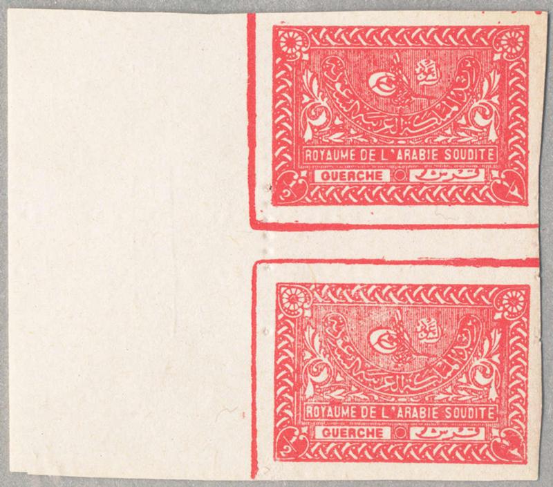 1934-57, 1/2 g, red, (2). perf. 11, lower side margin, center, piece, with gutter in between, perf. almost invisible, huge margin, LPOG never hinged, a fresh and desirable unit, XF! Estimate 400€.