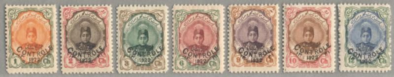 1922, 1, 2, 3, 6, 9, 10 and 12 ch, Control Issue, with black opt CONTROL 1922, tall vignette, LPOG/MNH, all stamps are not hinged, the 6 and the 12 ch have in vertical lines of missing gum (maybe original produced that way), very fresh and rich colour, VF! Estimate 280€.