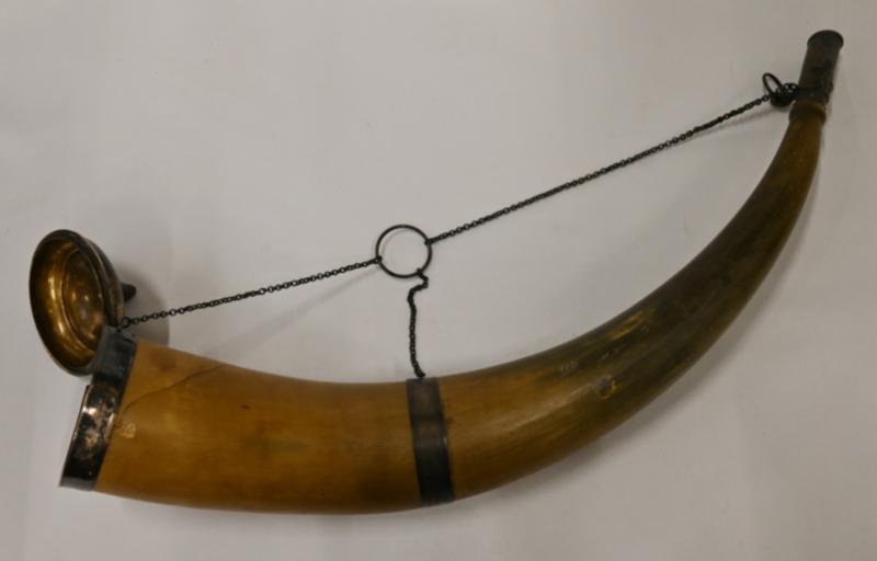 Civil Guard horn with engraving: Salon + Usk. S. K. Some patina (Image)