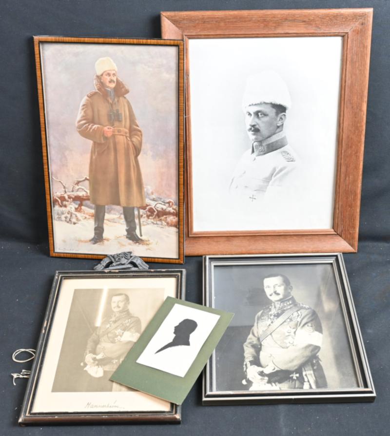 Four Mannerheim wall pieces. Also includes a Mannerheim silhouette (Eric Sundström, 1920s). PICKUP ONLY. (Image)