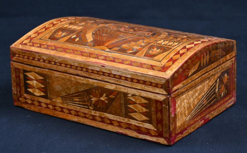 Pastime work, a decorative wooden box made by Soviet prisoner of war, ca. 23 x 17 x 10 cm (Image)
