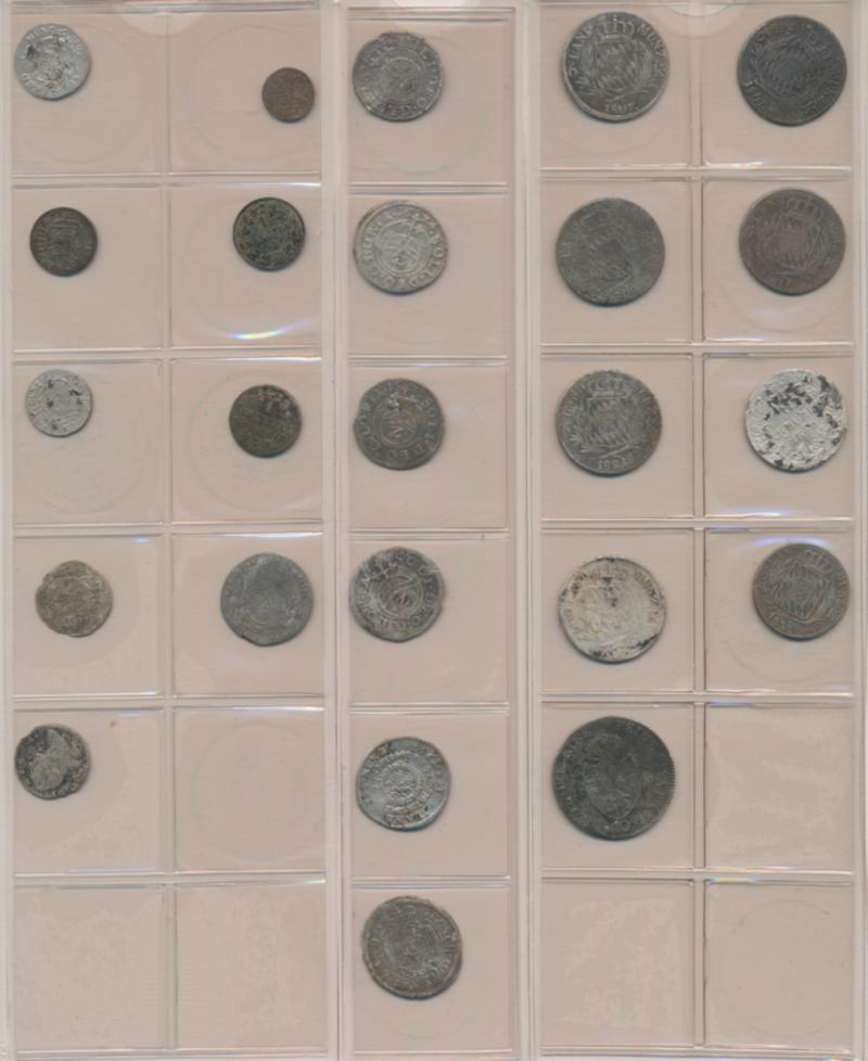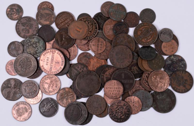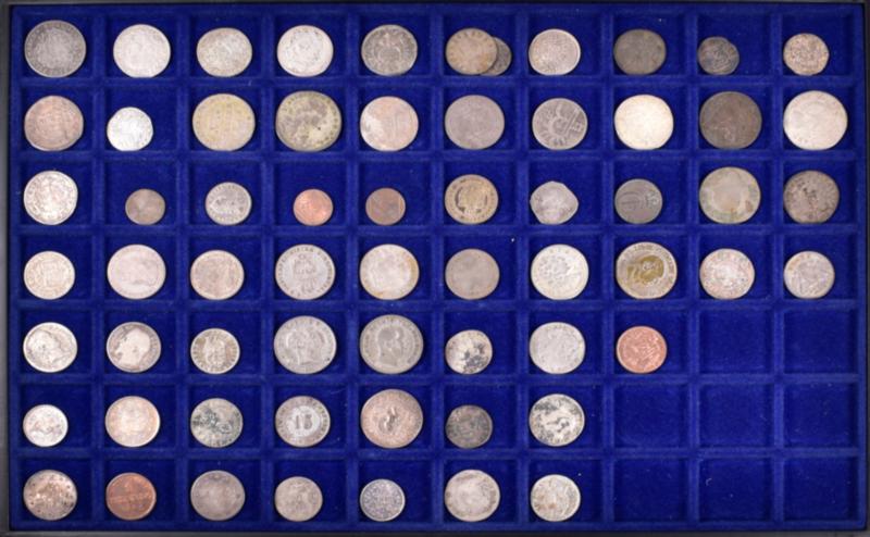 Altdeutschland und RDR bis 1800 Interessante Serie von circa 130 Kleinmünzen in Silber und Kupfer; meist altdeutsche Staaten; u. a. Sachsen 1/4 Taler 1559, 1/6 Taler 1763 und 1/12 Taler 1694; Bayern 30 Kreuzer 1726; Braunschweig Groschen 1540, Schleswig-Holstein 1/16 Reichstaler 1675, 20 Kreuzer Münzen aus dem Hause Habsburg sowie auch einige Münzen europäischer Staaten. Interessantes Konvolut für den Spezialisten, eine Besichtigung wird ausdrücklich empfohlen. (Image)