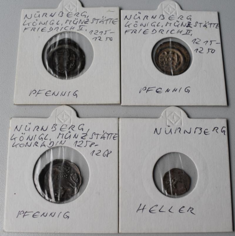 Altdeutschland und RDR bis 1800 Nürnberg: Friedrich II. 1215-1250: 2 x Pfennig um 1245-1250 (Bonh. 2013 + 2020) sowie ein Pfennig von Konradin 1258-1268 (Bon 2023). Dabei noch ein Heller um 1425 (Ke. 124). Lot 4 Münzen in Münzrämchen, bereits vorbestimmt. Katalog-Nummer(n) : Bo 2020 This lot is "Gebotslos". The Minimum Bid is 20 €, it will be sold at the HIGHEST BID (not one bidding step above the second highest bid). Value Add Taxes will be added to the hammer price and the buyers premium. (Image)