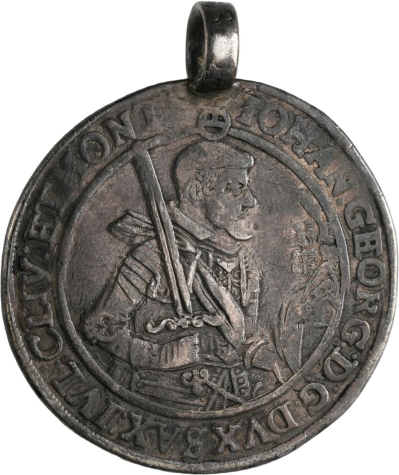 Altdeutschland und RDR bis 1800 Sachsen, Johann Georg I. (1611-) 1615-1656: Taler 1624 (Reichstaler) Dresden. Hüftbild mit geschultertem Kurschwert rechts // Wappen. 29,57 g. Davenport 7601, Clauss/Kahnt 156. Mit altem Henkel, sehr schön. Katalog-Nummer(n) : Dav. 7601 (Image)
