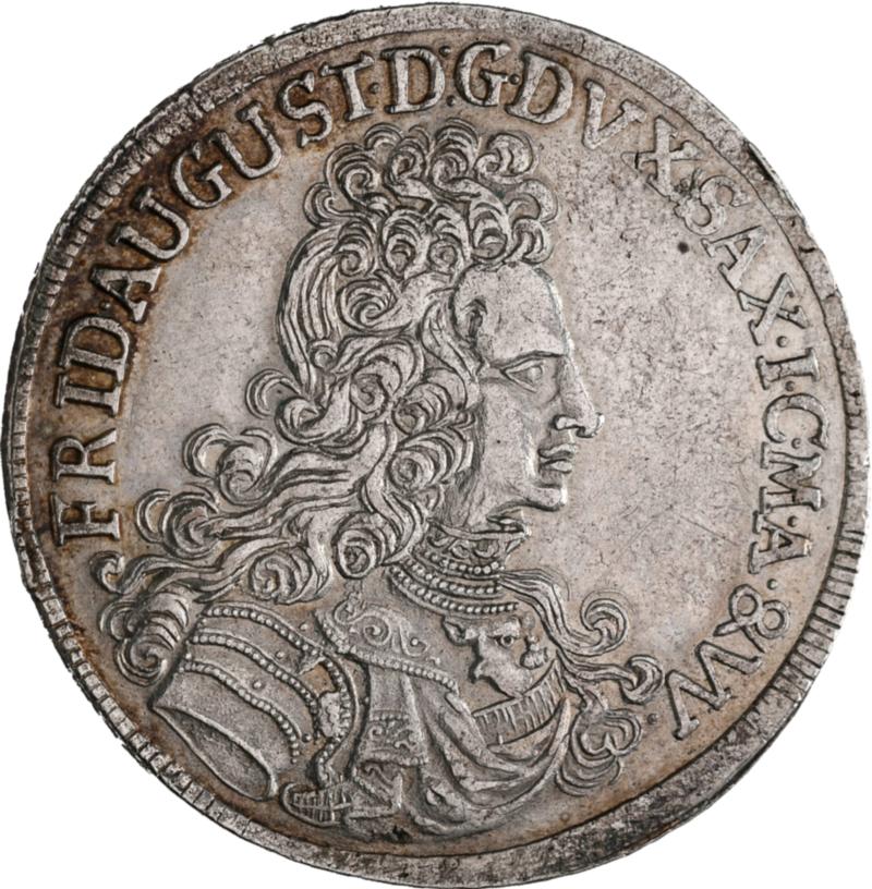 Altdeutschland und RDR bis 1800 Sachsen, Friedrich August I., der Starke 1694-1733: 2/3 Taler 1696 EP H - Leipzig. 16,67 g. Davenport 818, Kahnt 113. Kleine Randfehler, sehr schön+. Katalog-Nummer(n) : Dav. 818 Value Add Taxes will be added to the hammer price and the buyers premium. (Image)