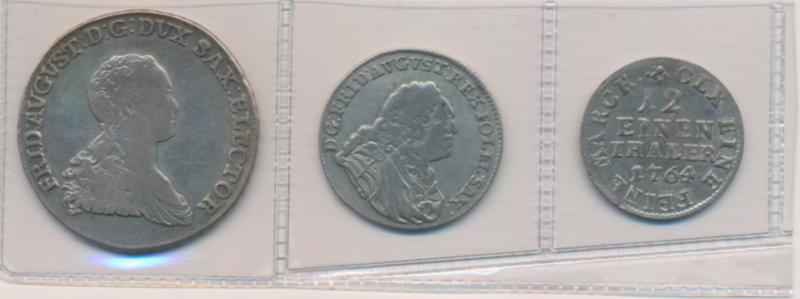 Altdeutschland und RDR bis 1800 Sachsen, Lot 3 Münzen, dabei: 2/3 Taler 1765 (Kahnt 1102), 1/6 Taler 1763 sowie 1/12 Taler 1764. Value Add Taxes will be added to the hammer price and the buyers premium. (Image)