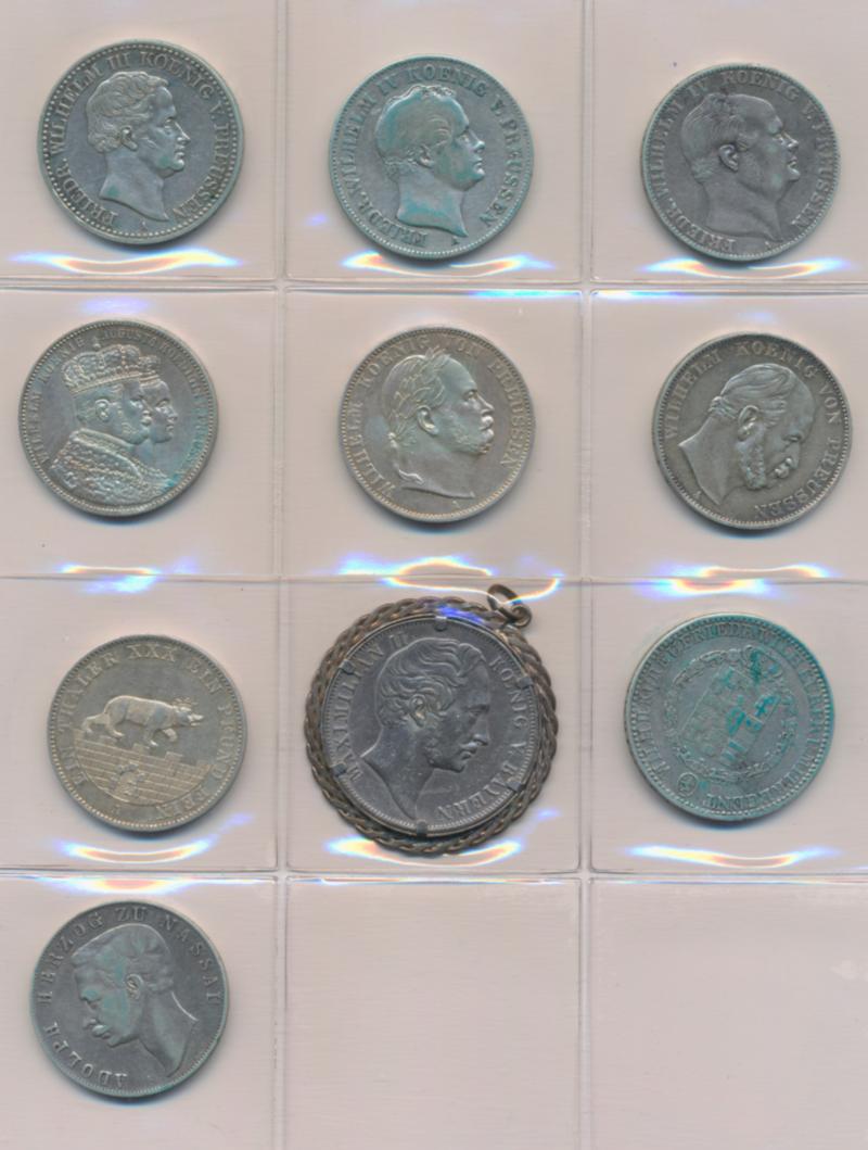 Altdeutschland und RDR 1800 - 1871 Lot 10 Taler, dabei: 6 x Preußen 1829-1871; Anhalt 1862; Bayern 1855 Mariensäule (zum Anhänger umgearbeitet); Hessen 1834 sowie Nassau 1860. (Image)