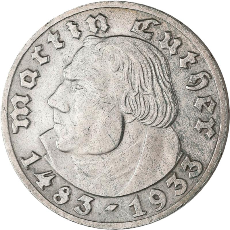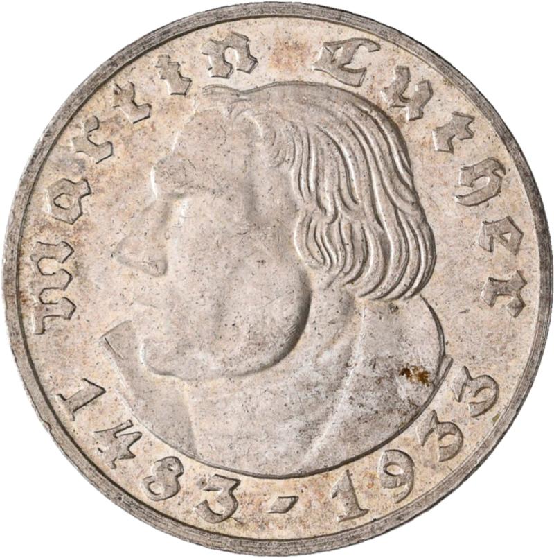 Drittes Reich 2 Reichsmark 1933 G + 5 Reichsmark 1933 J, Luther. Jaeger 352 + 353. Beide sehr schön - vorzüglich. Lot 2 Münzen. Katalog-Nummer(n) : J 352 (Image)