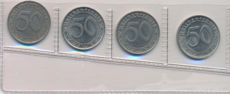 Drittes Reich 50 Reichspfennig 1939 aus Nickel, (J. 365). Dabei A, F (2x) und G, in überdurchschnittlicher Erhaltung. Lot 4 Münzen. Katalog-Nummer(n) : J 365 (Image)