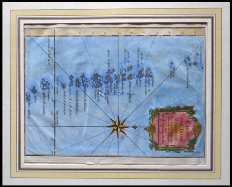 Maldives, "Carte of the Isles Maldives", coloured copper engraving from "Carte of the Voyag", approximate 1750 (Image 1) (Image)