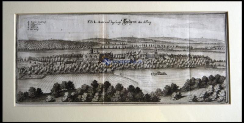 BENEFELD / ELS, map and general view, 2 views on one page, copper engraving by Merian about 1645 (Image 1) (Image)