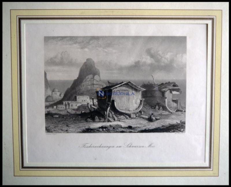 ISRAEL: fisherman's flats at the black ocean, steel engraving from Geyer / French about 1840 (Image 1) (Image)