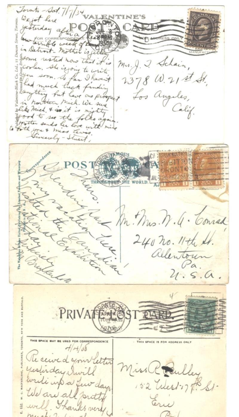 CANADA POSTCARDS Collection of postcards from Toronto, Ontario, 3 used with stamp, 14 unused (no stamp), from the period 1910 to 1967. CV of stamps S5 (Image)