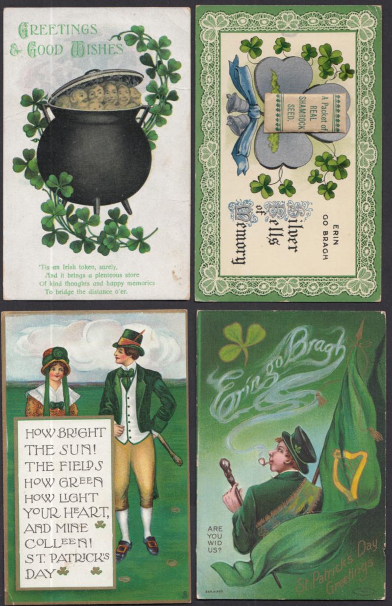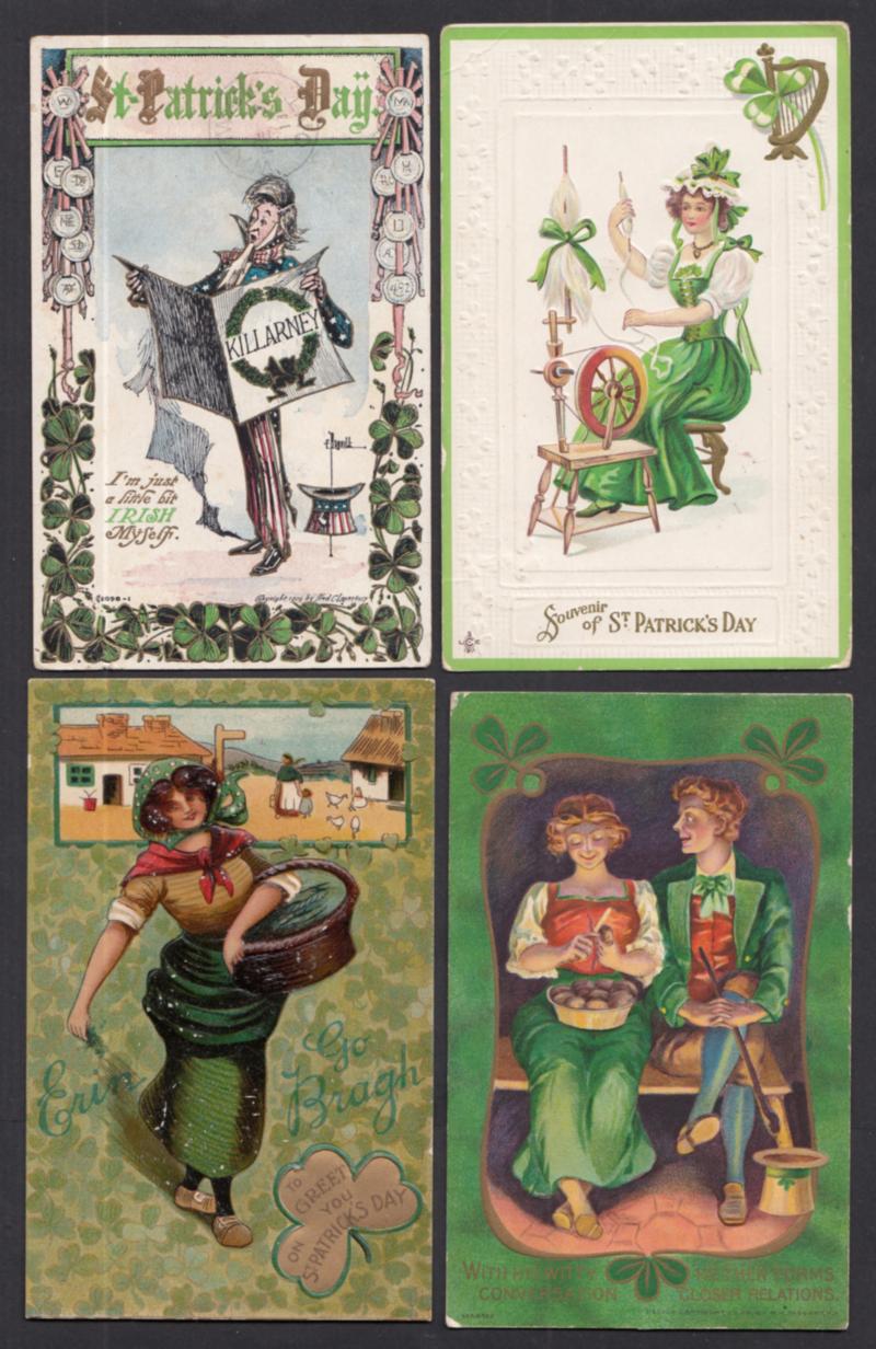 ST PATRICKS'S DAY POST CARDS - ONLY A FEW SCANNED (43 CARDS IN T Another great selection. 1910-20 period. Mostly cancelled in East Canada, Que & East. May have slight face duplication (5%) to contents of other three lots, Generally Fine (98% different faces) (Image)