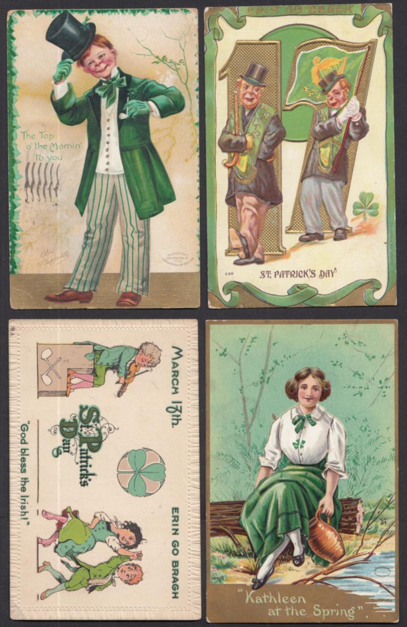 ST PATRICKS'S DAY POST CARDS - THIS AND NEXT 3 LOTS ARE FROM SAM thus little duplication in any of the 4 lots. Wonderful group, mostly Ontario usage, 1910-20 period. Many cancelled. Many orig priced $3-$5, a few higher. Gen Fine. See sample (98% different faces) (Image)