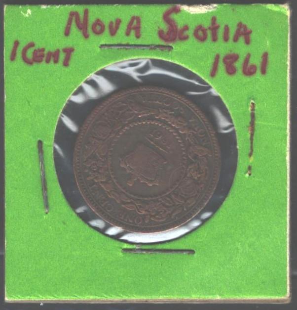 NOVA SCOTIA-1861 QV ONE CENT Fine example of the Crown and Wreath Penny coin (Image)