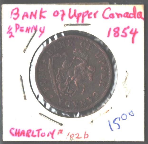 UPPER CANADA-1854 HALF PENNY Very Fine Bank of Upper Canada Half Penny Bank Token (Image)