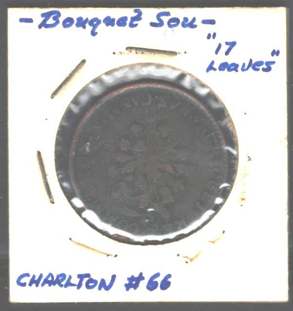 LOWER CANADA-1835-38 ONE SOU TOKEN Montreal one sou Agriculture and Commerce coin with wear and some scratches however very legible. Coin has 17 cherry leaves in design (Image)