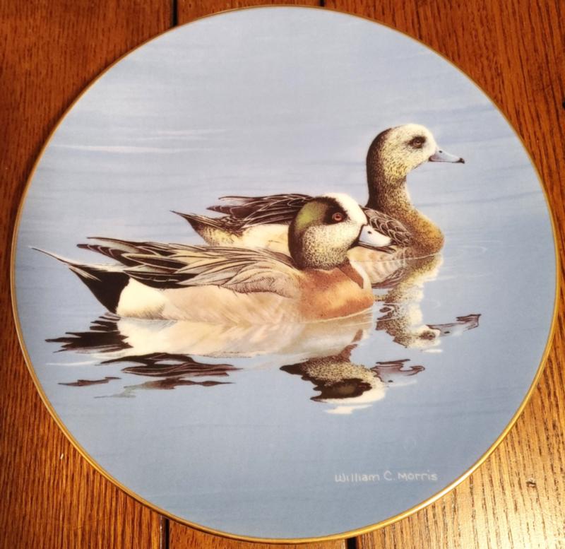 DUCK STAMP PLATE Lovely hand painted display plate featuring the 1984 Wigeons U.S. Federal Duck Stamp and signed by the Artist (Image)