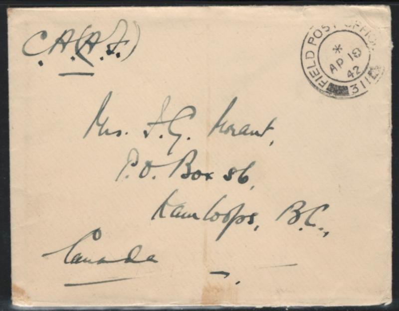 FPO311 COVER Cover dated April 19, 1942 with an FPO311 split ring cancel and a Seaforth Highlanders handstamp (Image)