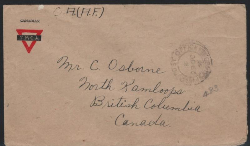 FPO483 Cover dated Oct. 27, 1941 from the Canadian Forestry Corps Depot with Base Depot and Orderly Room cancels (Image)