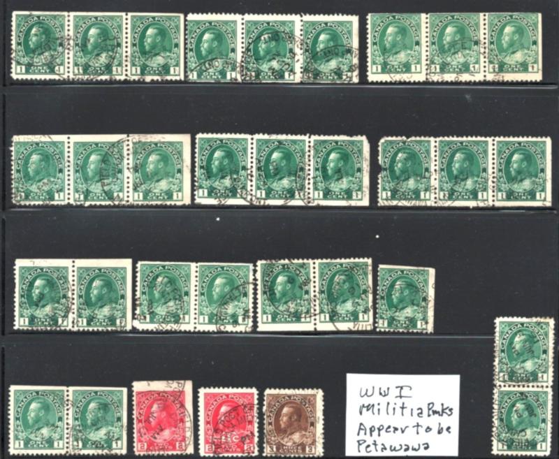 WW I PETAWAWA FIELD POST OFFICE CANCELS Group of 32 Admirals cancelled at the Ontario Base (Image)