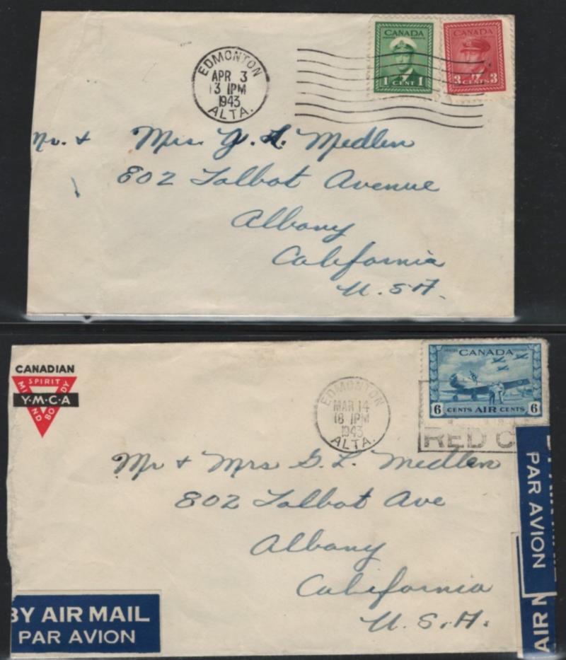 R.C.A.F. COVERS A pair of covers from 1943 to the U.S. from the #3 Depot in Edmonton and the #15 Depot in Claresholm (Image)