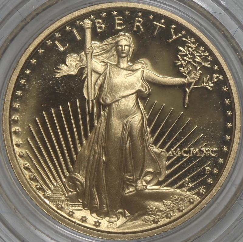 1990 Tenth-Ounce Proof in OGP w/ box and papers. (Image)