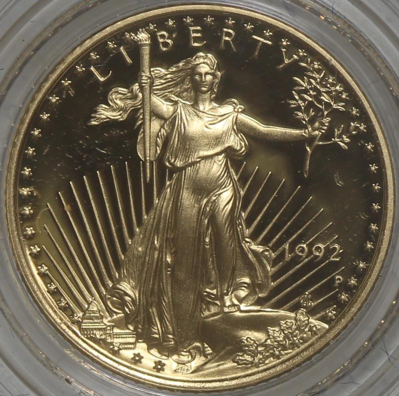 1992 Tenth-Ounce Proof in OGP w/ box and papers. (Image)