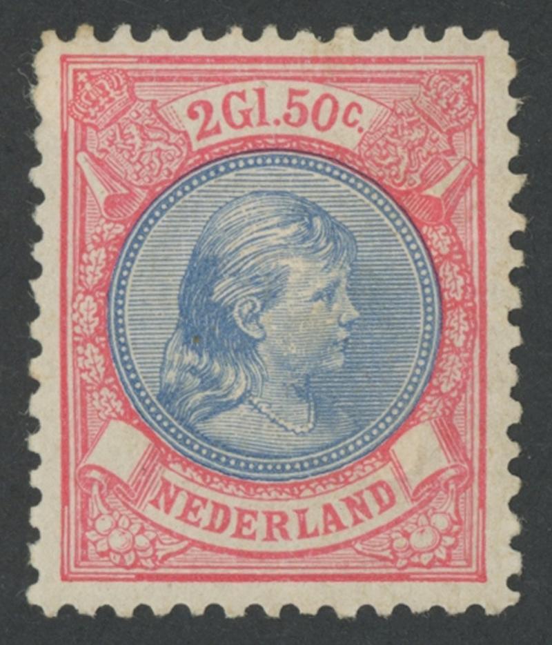 1891-98 Queen Wilhelmina 5g lake & bronze-green Perf 11 SG 165 (Michel 48C), well-centred, a couple of slightly uneven perfs, small hinge remainder, Cat £1200 (€900). (Image1)