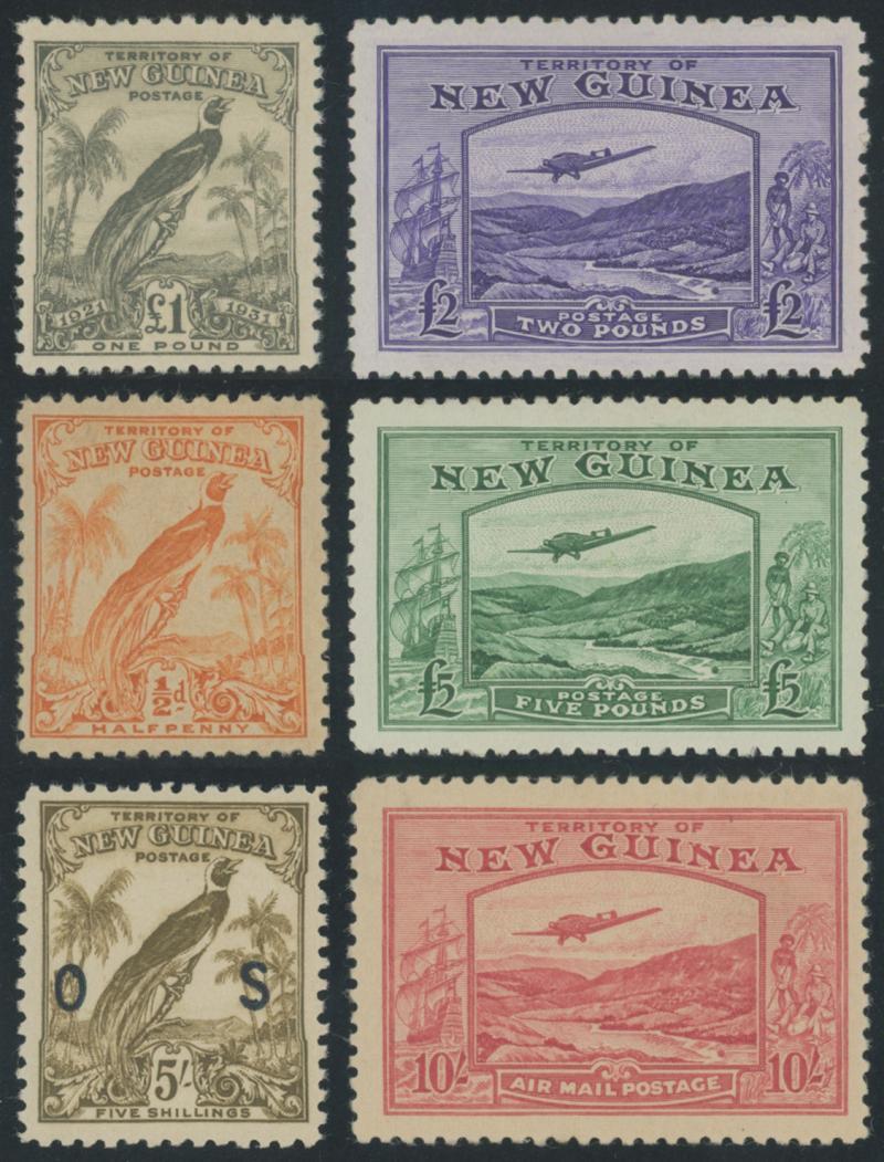 Selection with Huts mint to 2/- + used 10/-, Hut Airs mint to 10/- (the 5/- with Short 'I' in 'AIR'), Dated Birds 10/- *, Undated Airs to 5/- *&U, Bulolo Airs mint 6d imprint pair & £1 plus used pairs of the 2/- 5/- & £1, etc, generally fine to very fine.