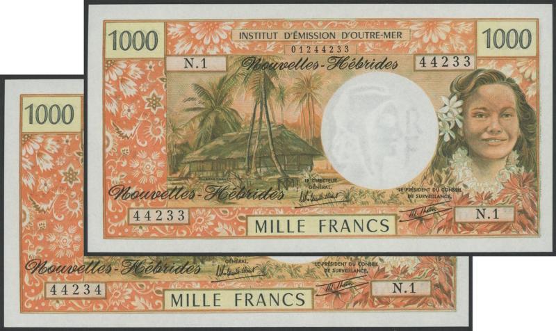 FRENCH: 1977 New Currency Provisional Surcharges Vila Overprints 5fr on 5c to 500fr on 10fr SG F247-255 plus the unissued 50fr on 1fr, 70fr on 2fr and 100fr on 3fr (mentioned by Gibbons in a footnote), mostly corner examples, unmounted; and the Paris Overprints, CTO; Cat £745.