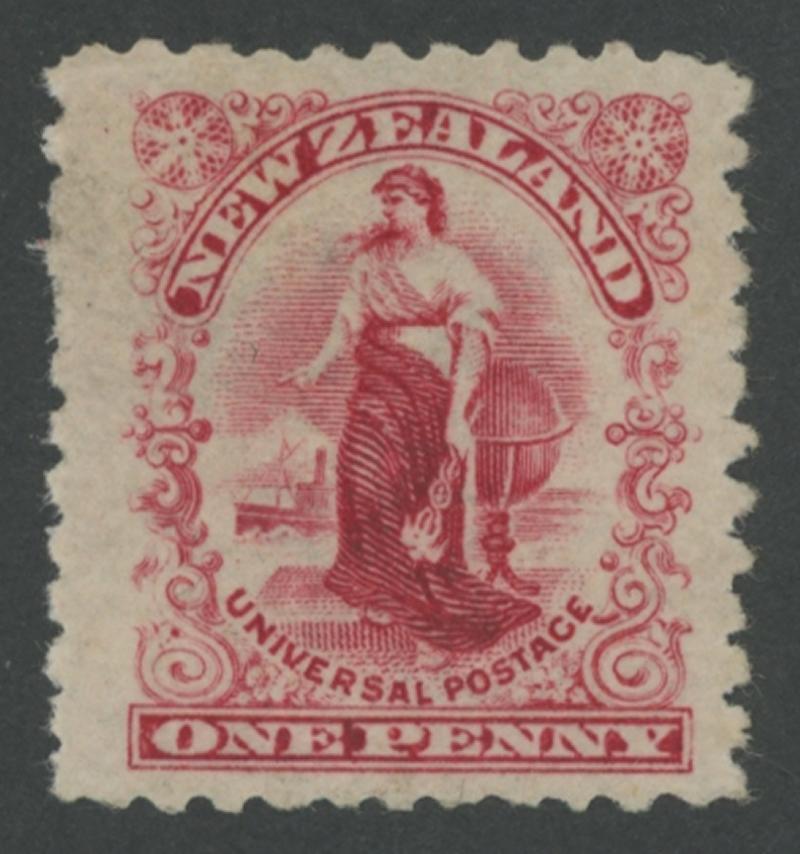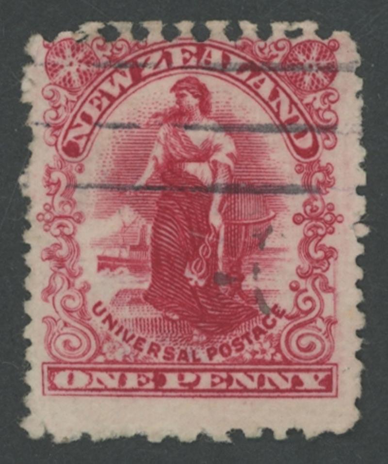 1906 Penny Universal Single-Lined Star 'NZ' Watermark New Waterlow Plates Compound Perf 11x14 1d rose-carmine CP G9c (SG 354), wayward centring, a couple of slightly uneven perfs, light machine cancel, Cat NZ$3250 (£1500). (Image1)