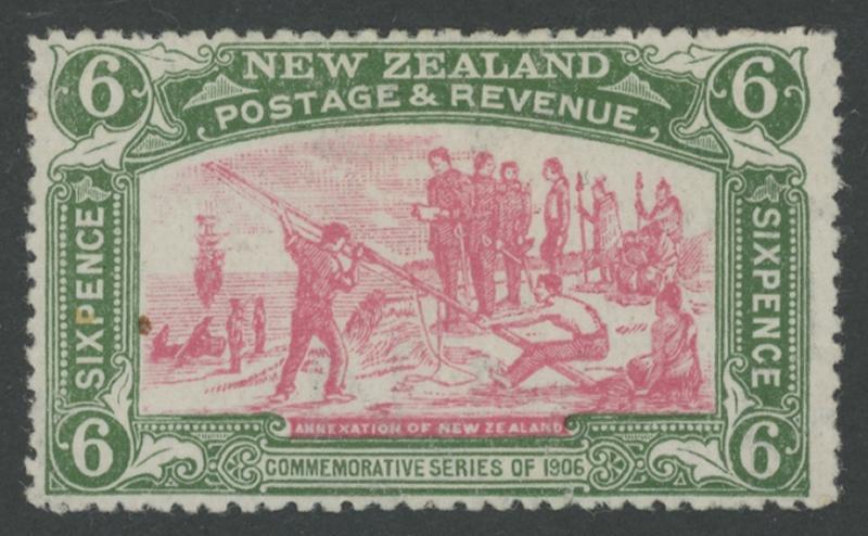 1906 Christchurch Exhibition 6d pink & olive-green SG 373, quite well-centred, minor gum disturbances & small hinge remainder, Cat £225. (Image1)