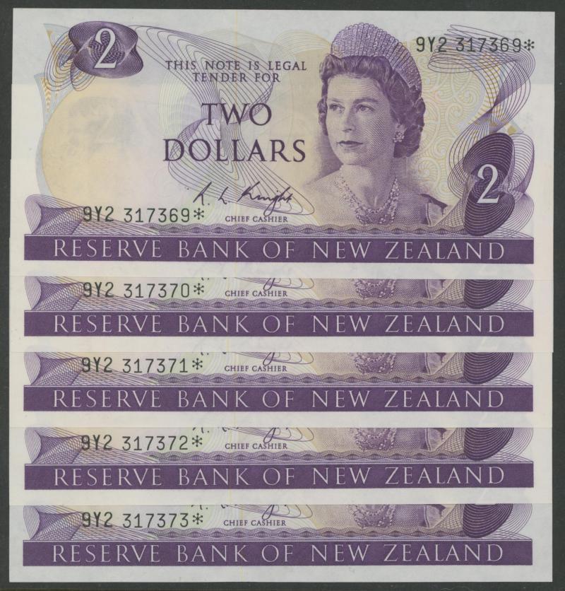$2 1975-77 Knight P164c Star Replacement run of ten serials '9Y2 317369*'-'378*', Uncirculated, Cat NZ$650.
