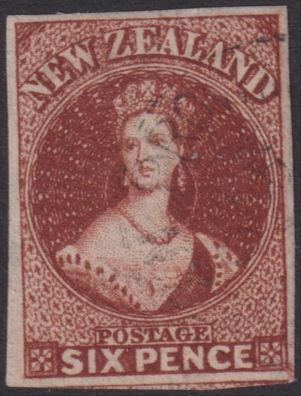 FFQ Chalon 6d red-brown, imperf 4 good margins, star wmk. Signed. Excellent example. SG 43. Cat £180. VFU. (Image)