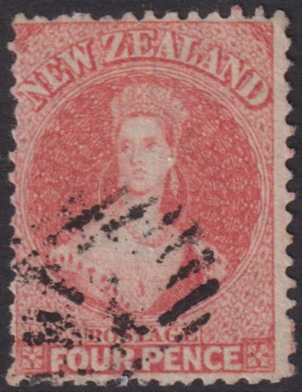 FFQ Chalon 4d deep rose, p12½, star wmk, heavyish barred cancel clear of face, o/c. SG 119. Cat £300. GU/FU. (Image)